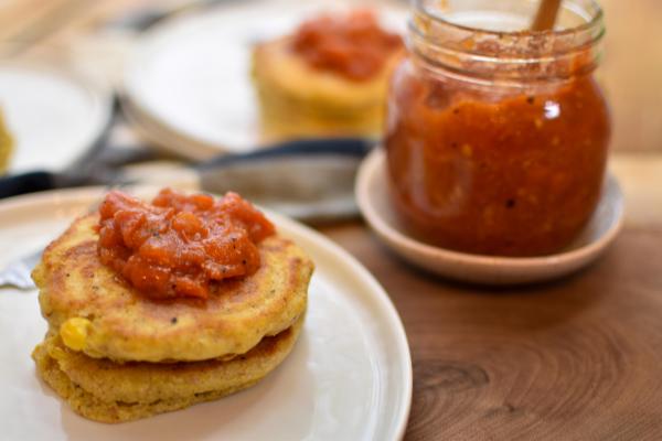 Corn cakes with tomato jam