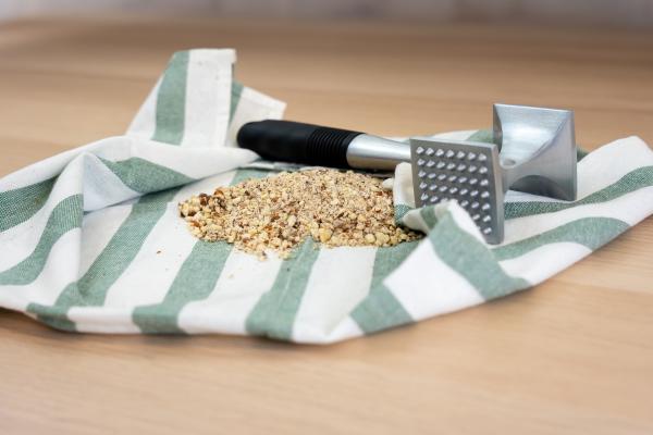 For the fish, place almonds in the middle of a clean kitchen towel and wrap into a bundle. Using a meat mallet or rolling pin, crush almonds until finely crushed.
