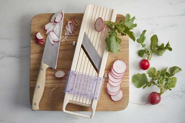 Thinly slice radishes using a mandolin or sharp knife. Arrange slices in small stacks on your cutting board. Thinly slice the stacks of radish to make thin matchsticks.