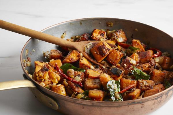 This curry recipe is versatile! You can easily substitute carrots or squash for the sweet potato. Serve with whole grain flatbread and yogurt for a quick, easy meal.